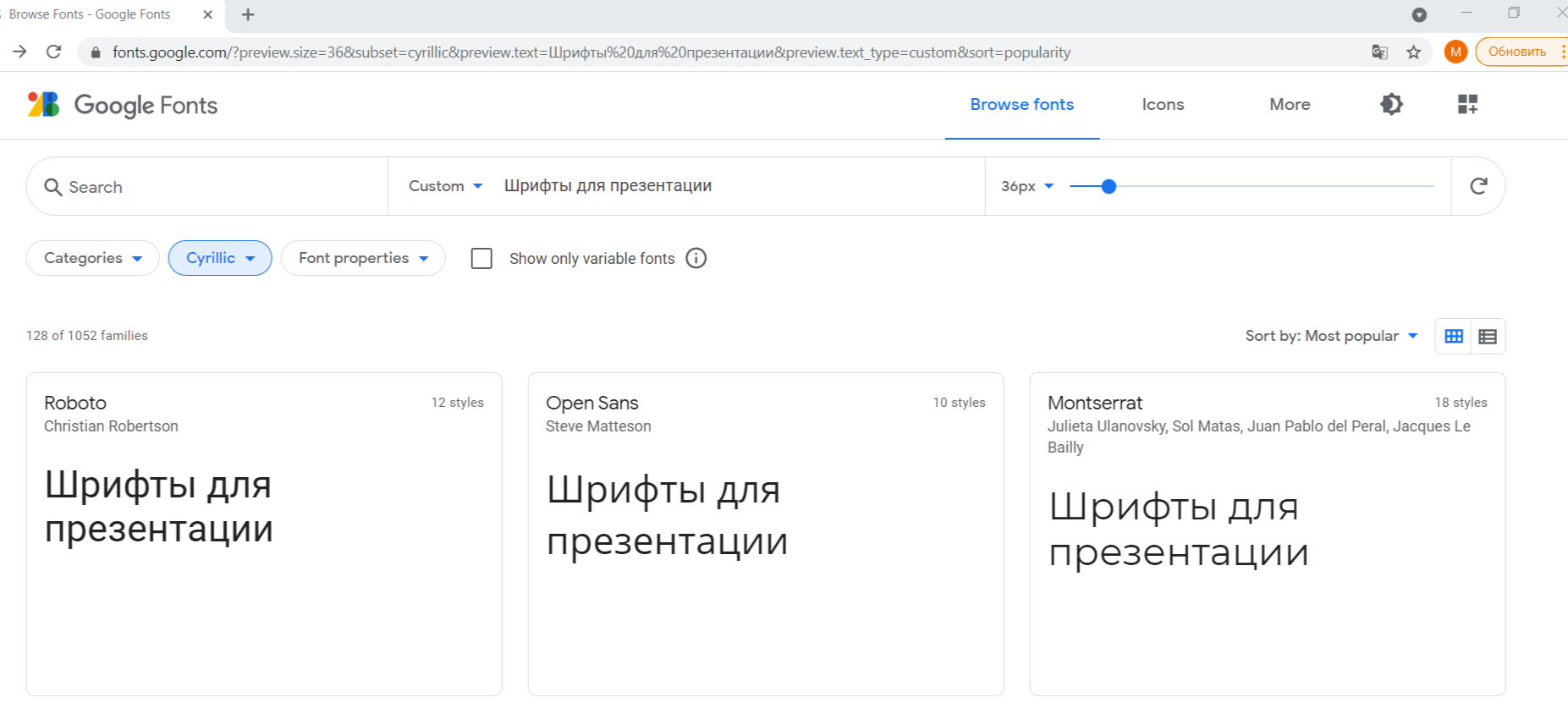Google Fonts. Bu ilova shriftlar kombinatsiyasini vizual tanlash imkonini beradi.