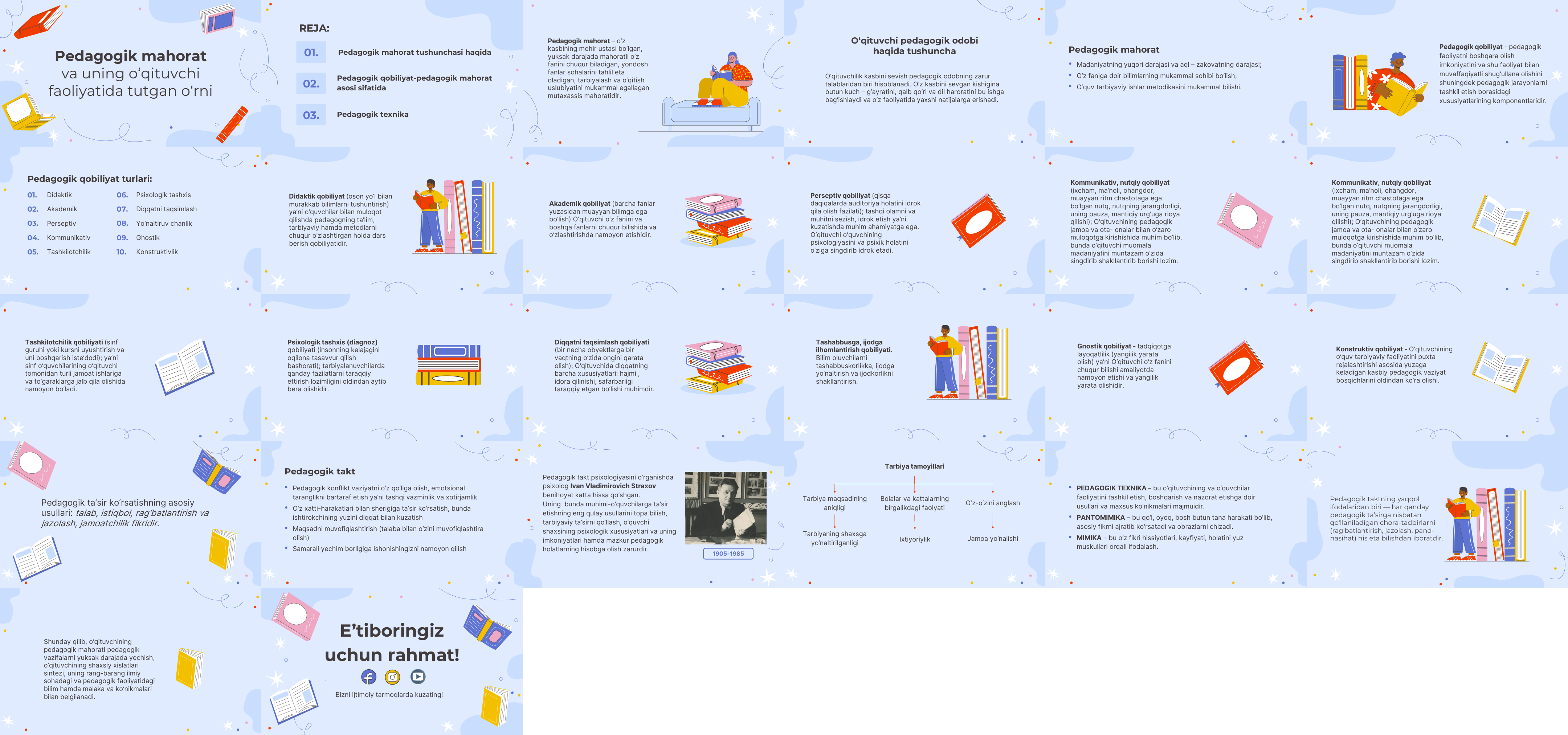 Pedagogik mahorat — o‘qituvchi faoliyatining yuksak cho‘qqisi bo‘lib, u nafaqat fan bilimlarini, balki insoniy fazilatlarni ham o‘zida mujassam etadi. Har bir o‘qituvchi o‘z pedagogik qobiliyatini, texnikasini, takti va odobini takomillashtirib borsa, ta’lim jarayoni samaradorligi oshadi, tarbiya esa hayotiy natijaga aylanadi.